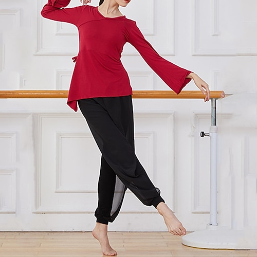 Damen Yoga-Anzug 2-teiliges Trainingsset Einfarbig Kombination Herbst Schwarz Rot Modal Tanz Pilates Yoga Hohe Taille Leicht Atmungsaktiv Langarm Sport Sportkleidung