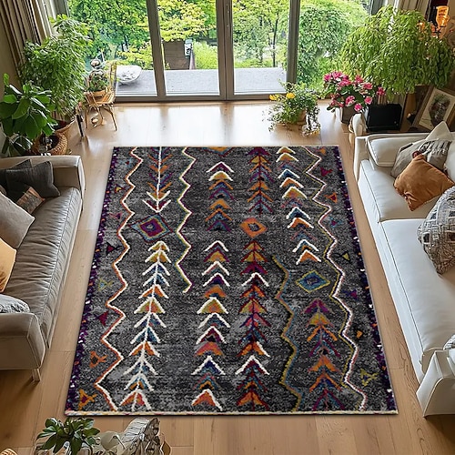 tappeto in stile tribale bohémien, tappeto da soggiorno in stile country americano, design a copertura totale, resistente alle macchie, motivo per camera da letto, arredamento per la casa