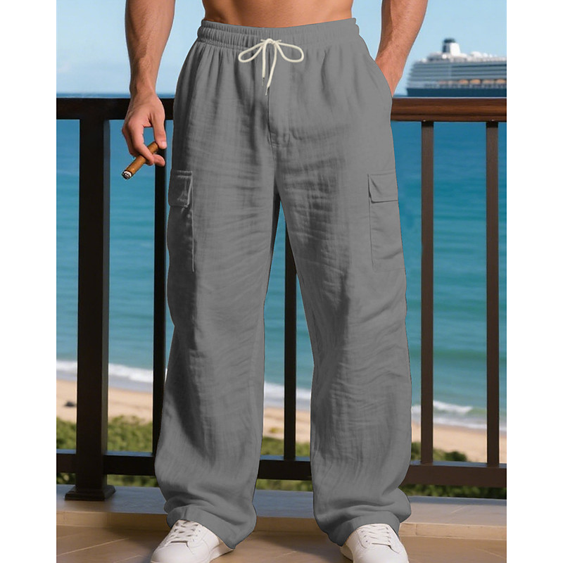 Men's Cotton Linen Pants Trousers Summer Pants Baggy Pants Beach Pants Pocket Solid Color Comfort Breathable Daily Outdoor Beach Vacation Fashion Black White Inelastic