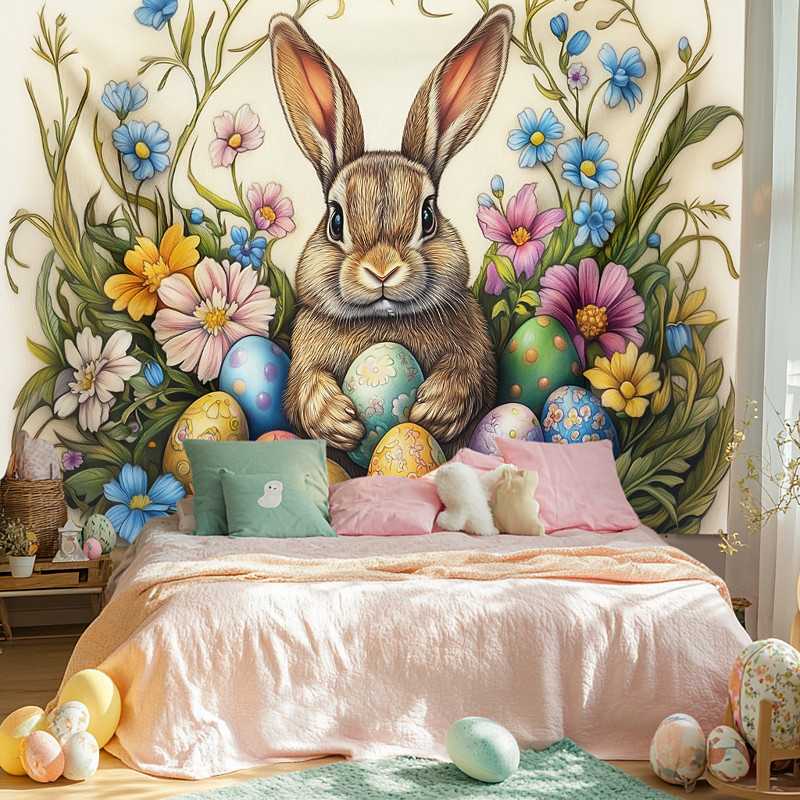 Hanging Tapestry Bunny Eggs Wall Art Large Tapestry Mural Decor Photograph Backdrop Blanket Curtain Home Bedroom Living Room Decoration