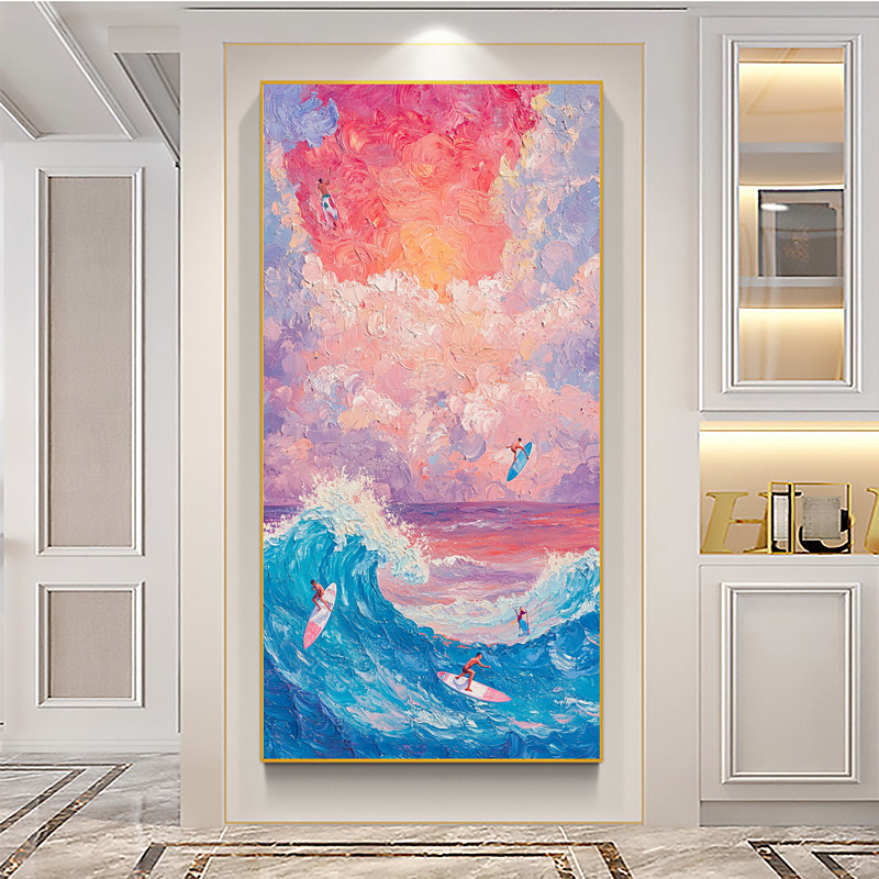 Handmade Original Seascape Oil Painting On Canvas Wall Abstract Ocean Waves Painting for Home Decor With Stretched Frame/Without Inner Frame Painting