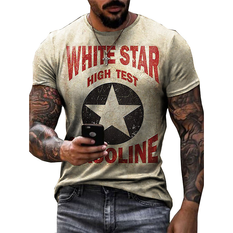 Men's Graphic Star Letter T Shirt Short Sleeve T shirt 3D Print Crew Neck Shirt Fashion Basic Classic Street Casual Daily Yellow Blue Green Summer Clothing Apparel S M L XL 2XL 3XL 4XL