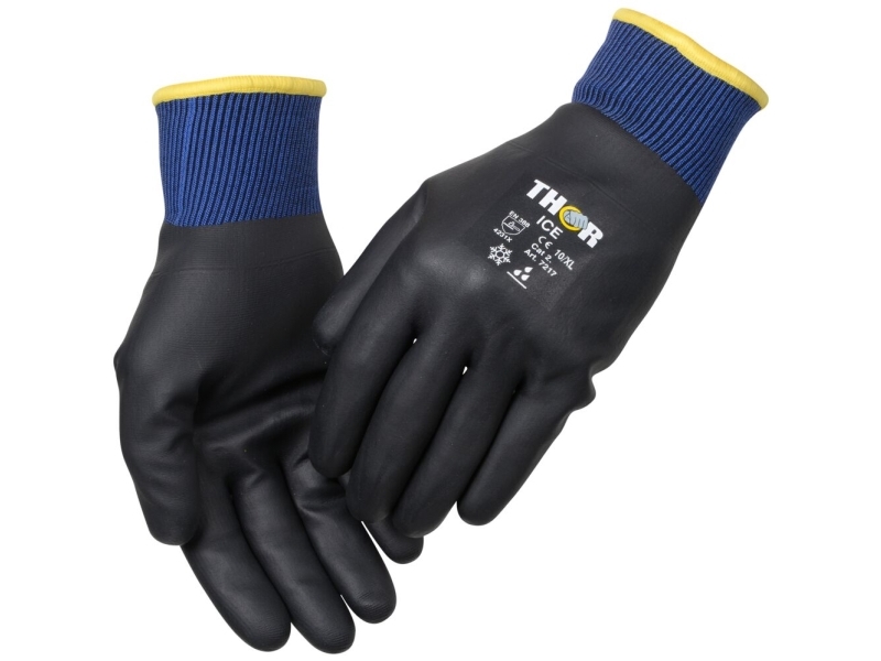Täysin kastettu nitriilikäsine, THOR Ice, 9/L, musta, akryyli/polyesteri - (12 kpl)