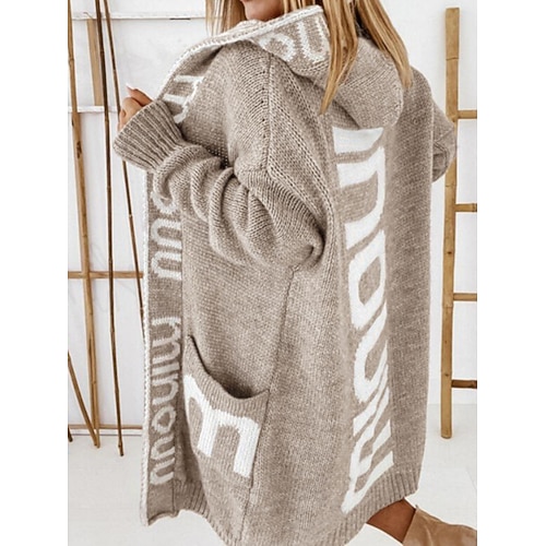 Damen Pullover Strickjacke Elegant Mode Streetwear Buchstabe Mit Kapuze Tasche Gestrickt Langarm Lange Oberteile Stricken Outdoor Täglich Wochenende Schwarz Orange Frühling Herbst