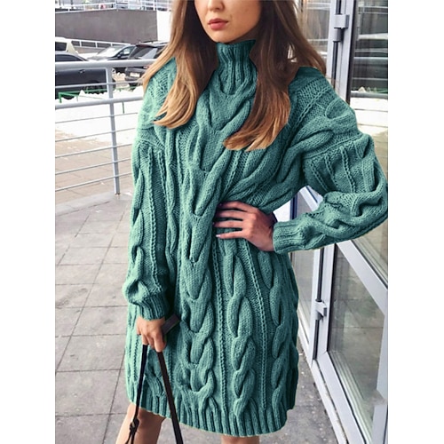 Damen Pullover Pullover Kleid Lässig Weich Einfarbig Gerippt Rundhalsausschnitt Gestrickt Langarm Lange Oberteile Stricken Outdoor Täglich Wochenende Schwarz Grün Herbst Winter