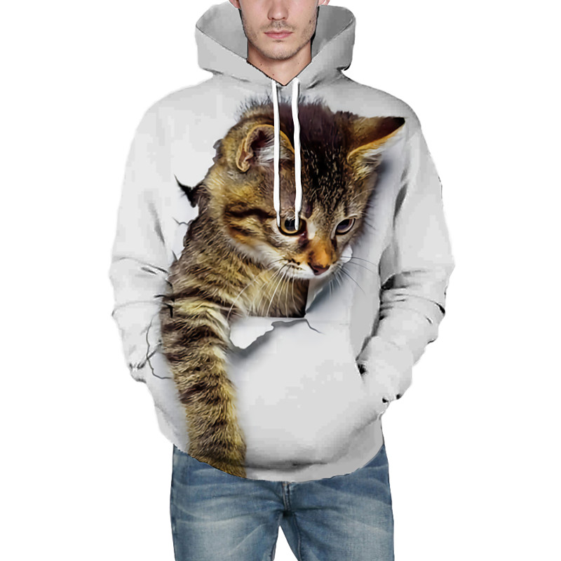 Men's Wolf 3D Hoodies Sweatshirt Cool Party Long Sleeve Crew Neck Club Streetwear White Blue Purple Drawstring Fall Winter Designer S M L XL XXL XXXL