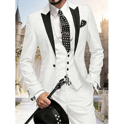 Herren Blazer Weste Anzughose Blazer Geschäft Arbeit Party Mode Streetwear Herbst Winter Terylen Farbblock Einreihig Blazer Weiß Champagner Hellgrün Rosa