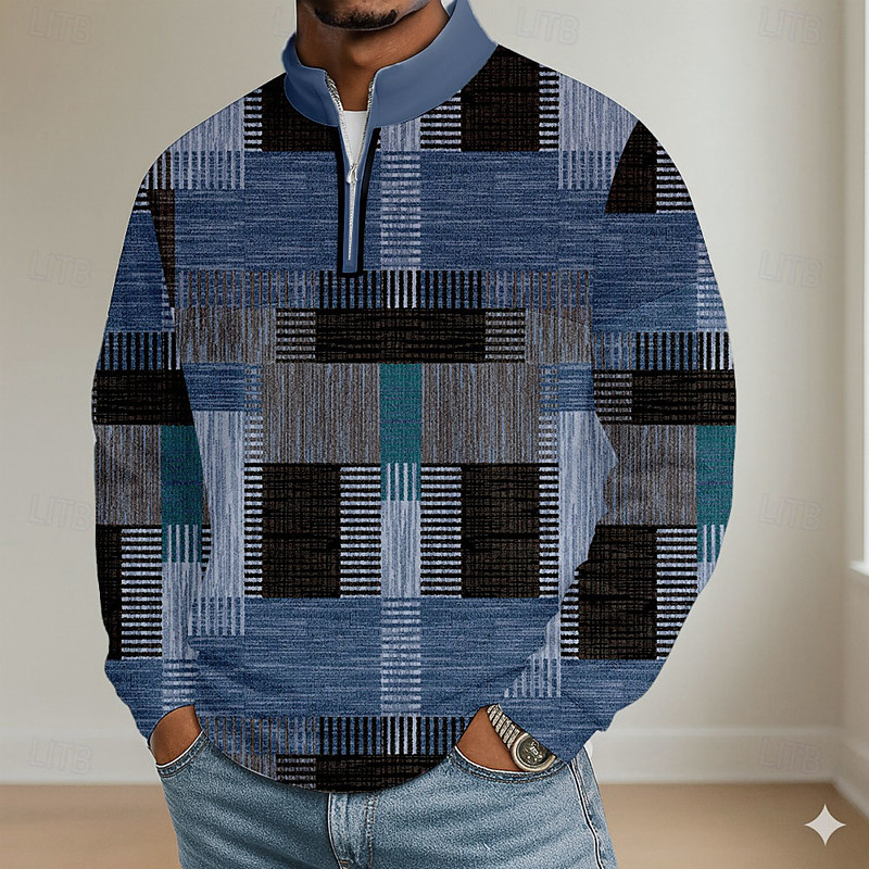 Men's Color Block Geometic Polo Long Sleeve Standing Collar Athleisure Vacation Athleisure Casual Daily 3D Print Spring Fall Blue Purple Brown