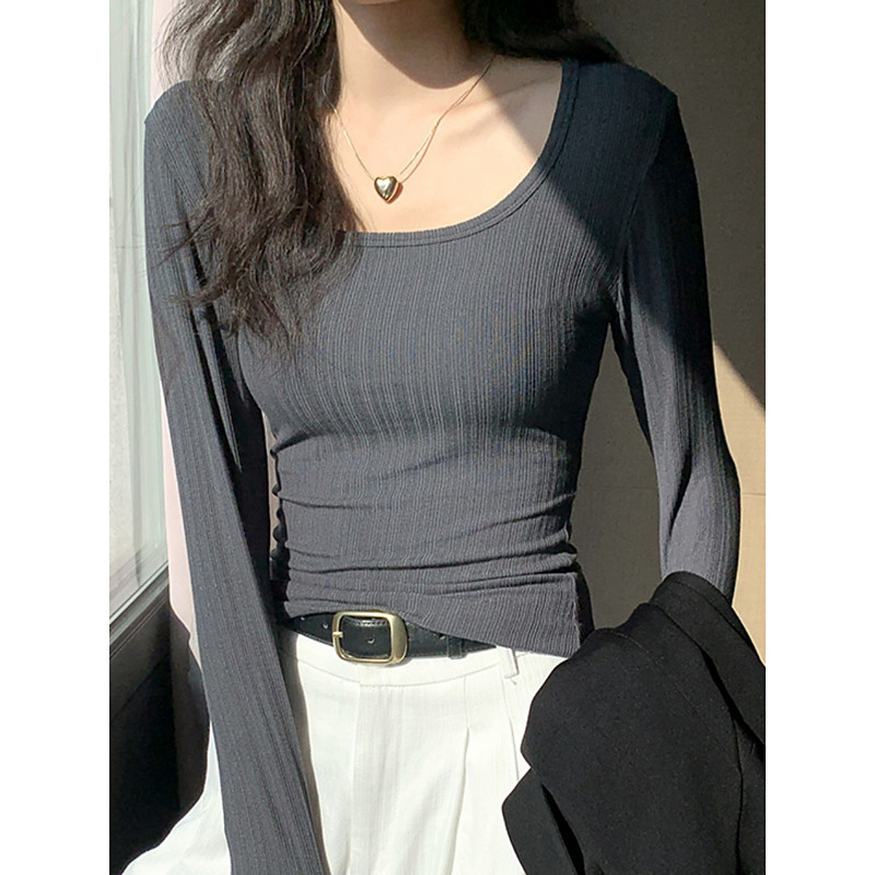 Women's Blouse Solid Color Elegant Stylish Basic Long Sleeve Scoop Neck Regular Tops Daily Black White Army Green Green Dark Gray Spring Fall Winter