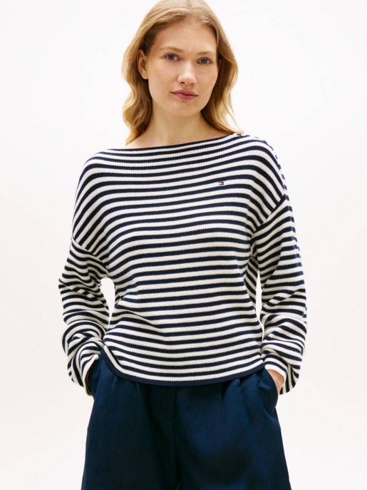3/4-Arm-Shirt TOMMY HILFIGER "NEW CODY SLIM BOAT-NK 3/4SLV mit U-Boot und Streifen", Damen, Gr. XXXL(46), brisk blau, ecru stp, Jersey, Obermaterial: 100% Baumwolle, gestreift, slim fit hüftlang, U-Boot-Ausschnitt, abgesteppt, Shirts 3/4-Arm-Shirt, gestre