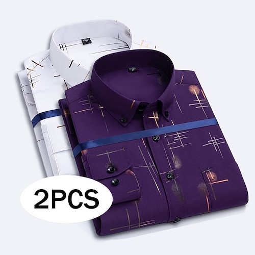 Per uomo Camicia Camicia elegante Camicia button-down Astratto Quotidiano Affari Bianco Viola Azzurro nero Azzurro chiaro Vino Blu polvere nero / grigio Manica Lunga Collo ripiegato Tutte le