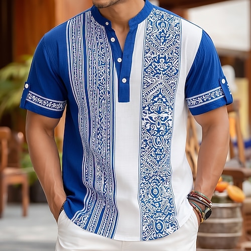 Per uomo Geometrico Etnico Floreale intricato Camicia Camicia button-down Maglia Henley Manica Corta Vintage Retrò Ferie Casual Quotidiano Estate Primavera Colletto Mao Colletto Henley Stampa 3D