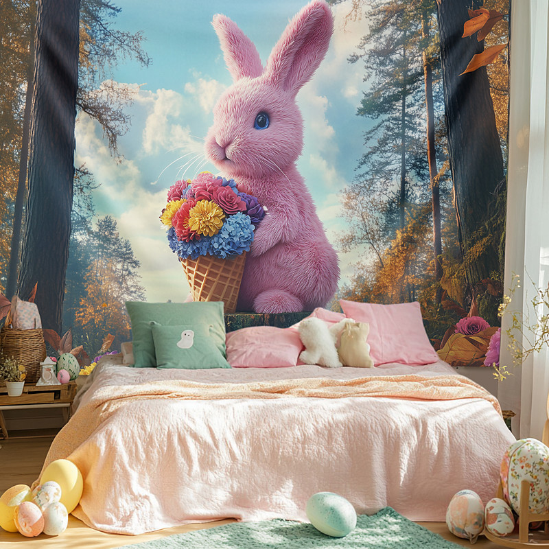 Easter Bunny Eggs Hanging Tapestry Wall Art, Large Decorative Tapestry Mural for Home Bedroom Living Room, Photograph Backdrop Blanket Curtain, Spring Easter Decoration