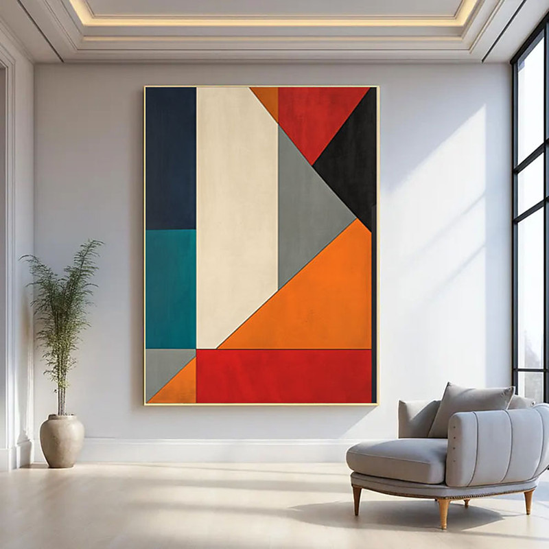 oil painting handmade Abstract Color Block oil painting wall Art Large Colorful Geometric Painting Mid-Century Modern Canvas Handmade Original Artwork Living Room Decor