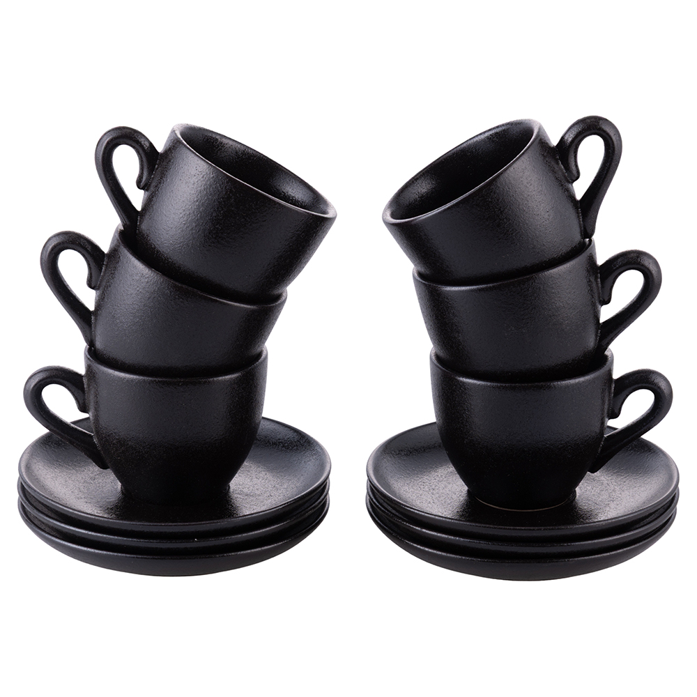 <p>Set 6 tazzine caffè 90 ml con piattino in gres, Horeca Black</p>