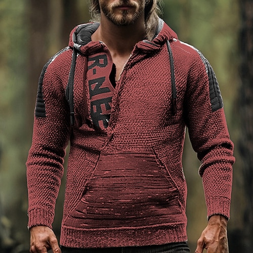 Per uomo Maglione Maglioni con zip a un quarto Maglione a maglia A Coste Maglia Top Regolari Lavorato a maglia Lettera Con Cappuccio Moda Essenziale Vacanza Abbigliamento quotidiano Abbigliamento