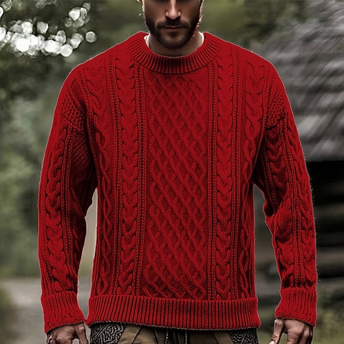 Per uomo Maglione Maglione a maglia A Coste Maglia Top Regolari Lavorato a maglia Semplice Girocollo Moda Essenziale Vacanza Abbigliamento quotidiano Abbigliamento Autunno Inverno Nero Rosso M L XL