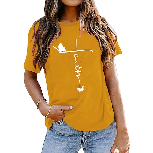 Per donna Maglietta Farfalla Lettera Fede Essenziale Manica Corta Girocollo Top Regolari Quotidiano Blu navy (carattere bianco) Nero (carattere bianco) Verde scuro (carattere bianco) grigio scuro