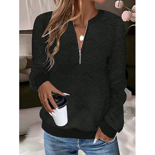 Per donna Felpa Pullover Semplice Casual Manica Lunga Girocollo Top Regolari Streetwear Abbigliamento Quotidiano Cerniera Nero Bianco Rosa Grigio Autunno Inverno