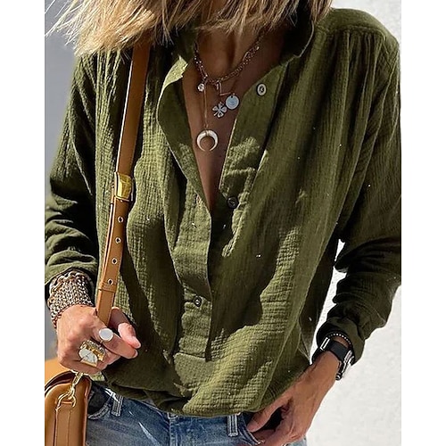 Per donna Blusa Tinta unica Elegante Essenziale Casual Manica Lunga Colletto a Camicia Top Regolari Quotidiano Bottoni Nero Bianco Blu marino Azzurro cielo Cachi Estate Primavera Autunno