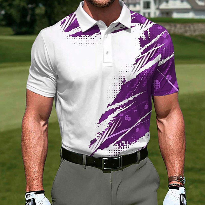 Men's Abstract Golf Sports Polo Shirts Short Sleeve Polo Shirts Collared Shirts Casual Athleisure Buttons Summer Spring Blue Red Purple