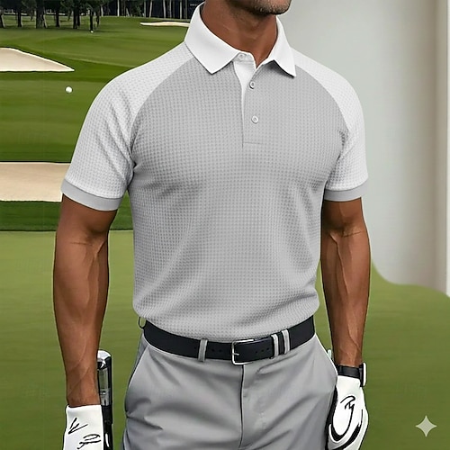 Men's Waffle Polo Shirts Polo Casual Sports Lapel Short Sleeve Fashion Basic Plain Quarter Zip Summer Spring Black White Sky Blue Brown Army Green Gray Waffle Polo Shirts