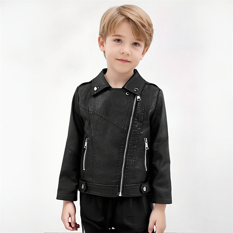 Kid's Boys' Black Leather Jacket Jacket Outerwear Plain Long Sleeve Zip Up Waterproof Windproof Coat Daily Fashion Casual Black Brown Green Spring Fall 4-12 Years
