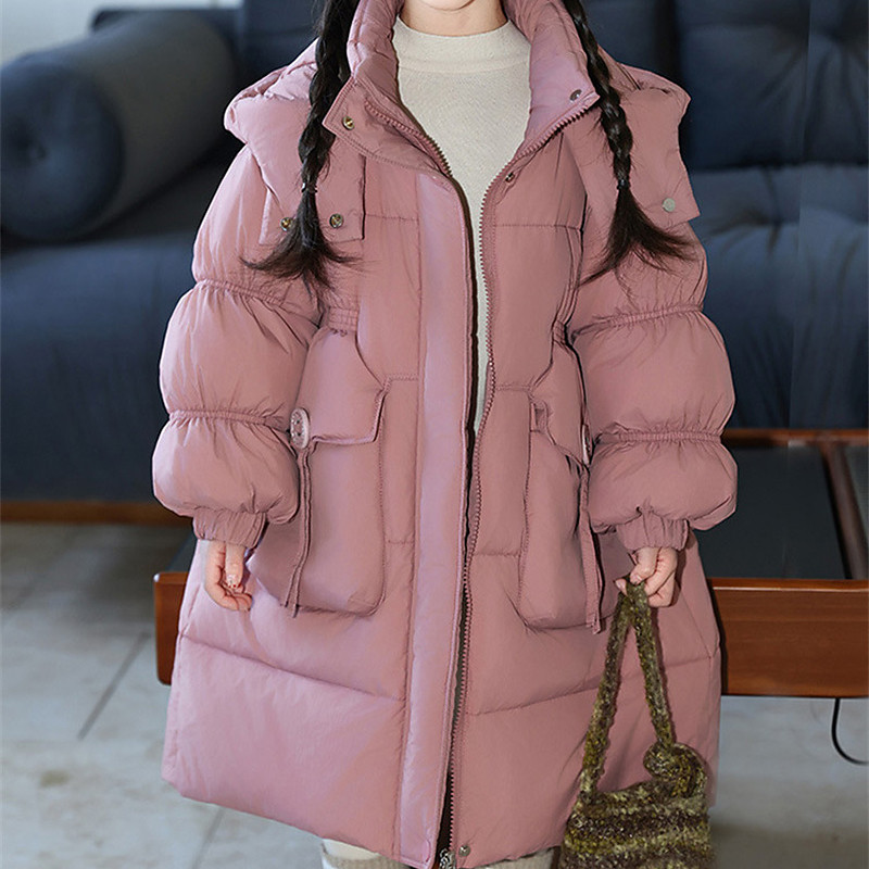 Kids Girls' Down Coat Outerwear Plain Long Sleeve Coat Daily Active Adorable Green Black Pink Winter 4-12 Years