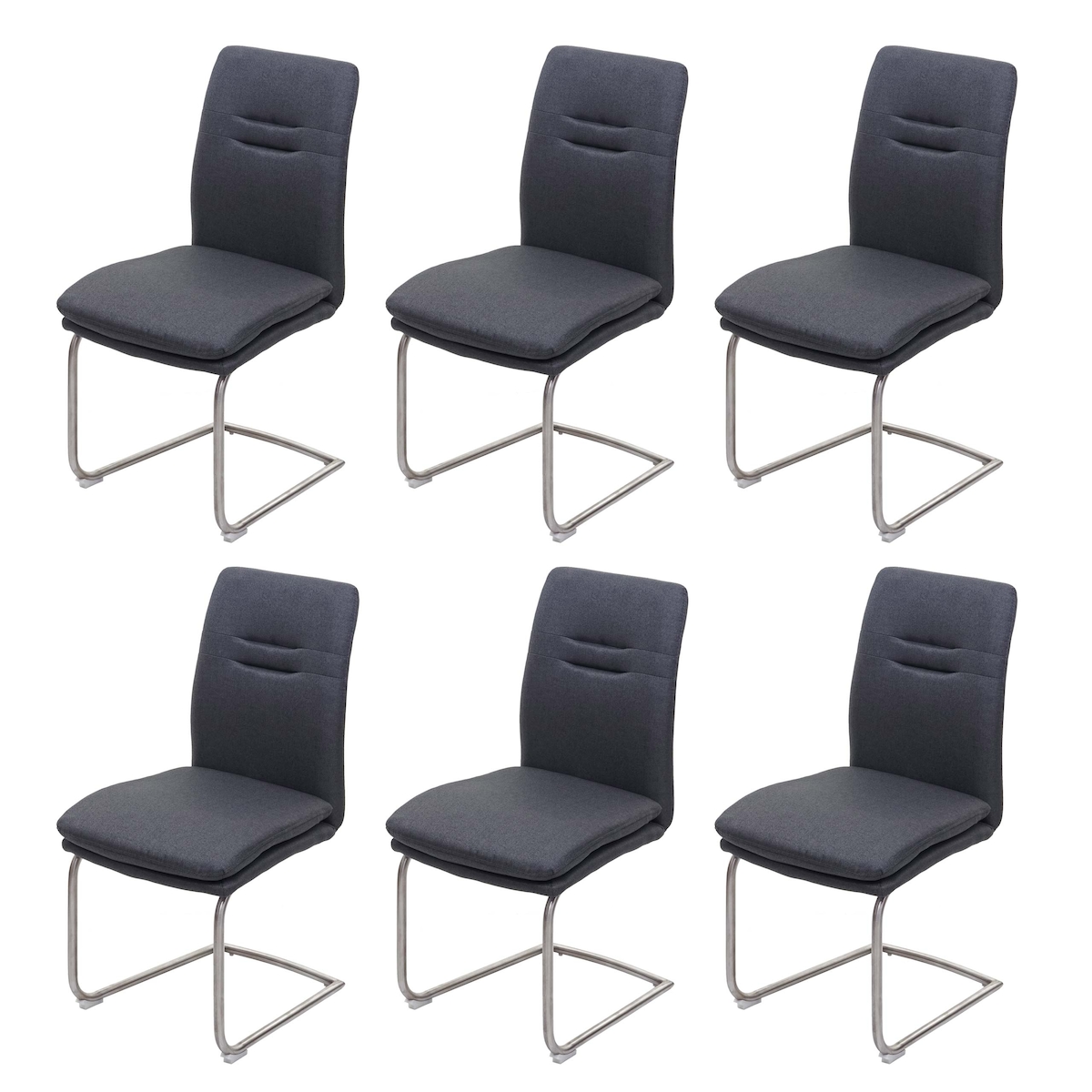 Mendler 6er-Set Esszimmerstuhl HWC-H70, Küchenstuhl Freischwinger Stuhl, Stoff/Textil Edelstahl gebürstet ~ dunkelgrau