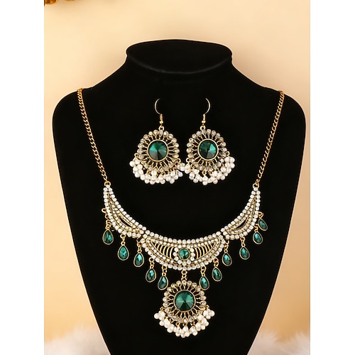 Damen-Schmuckset mit grünem Kristallperlen-Halsband für Weihnachtsfeiern, Set mit Halskette im Vintage-Stil im indischen Stil und Statement-Ohrringen für Feiertagsfeiern formelle Veranstaltungen