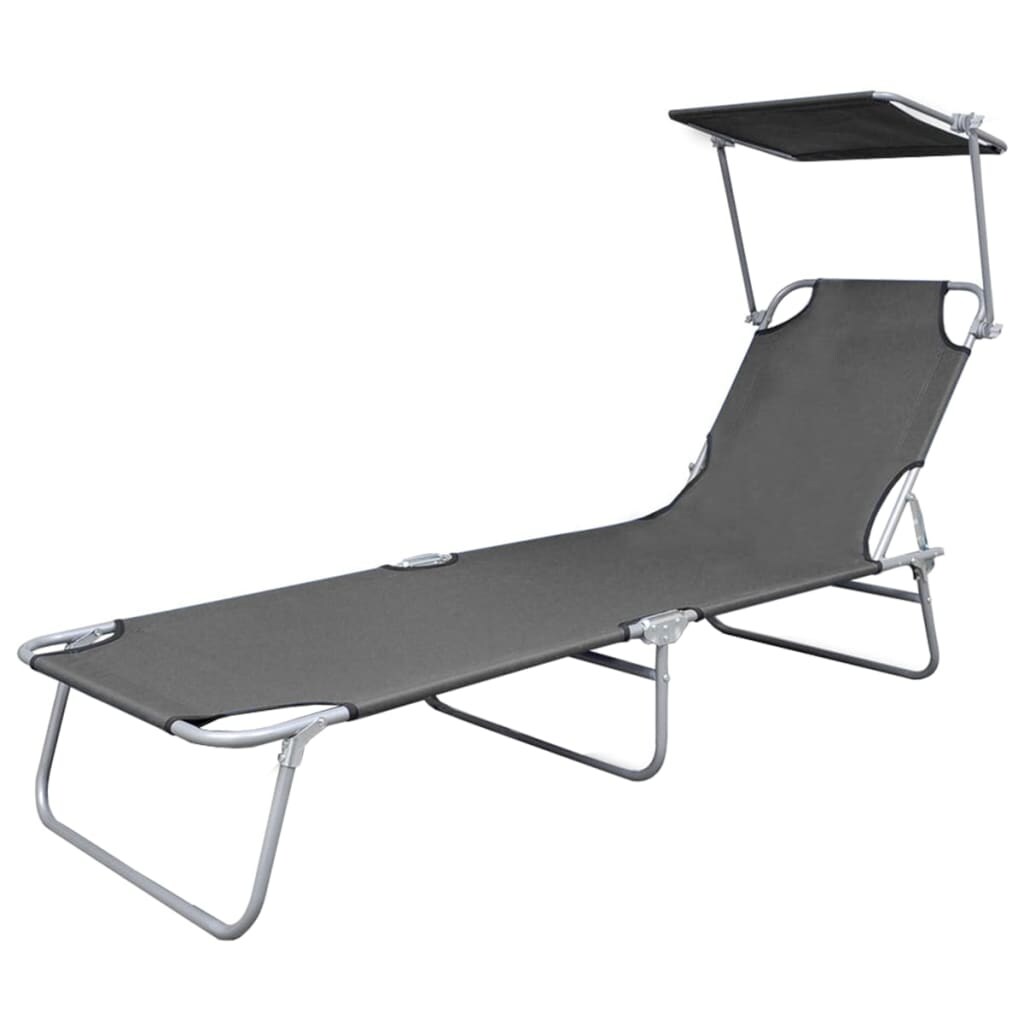 vidaXL Klappliege mit Sonnenschutz Stahl Grau