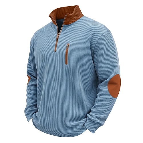 Per uomo Camicia di Velluto a Coste Maglietta Camicia a Maniche Lunghe Manica Lunga Con cerniera Autunno Inverno Tinta unica Blocco di colori Quotidiano Testurizzato Casual Con zip Oversize Ampio