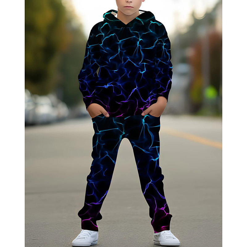 Boys 3D Graphic Game Hoodie Sweatpants Set Sports Suit Tracksuits Long Sleeve Spring Fall Daily Basic Casual Kids 4-12 Years Hooded Outdoor Vacation Sports Tailored Fit