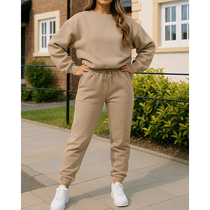 Women's Pullover Sweatsuit Sets 2 Piece Tracksuit Lounge Outfits with Pocket Solid Colored Clothing Suit Fall Black White Gym Running Fitness Lightweight Breathable Long Sleeve Sport Activewear