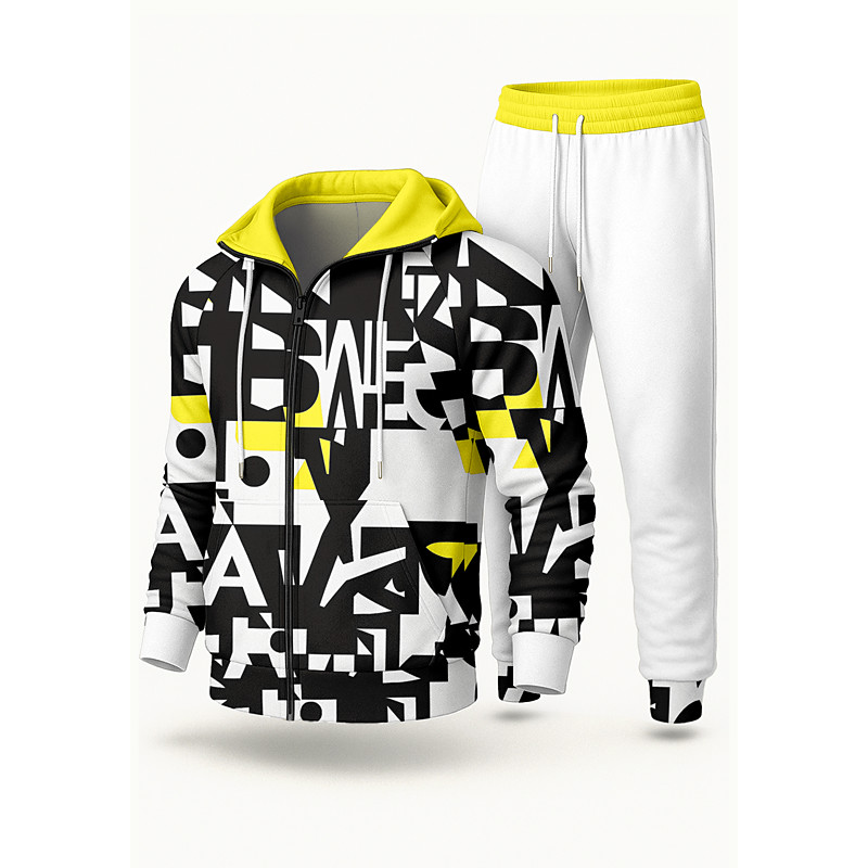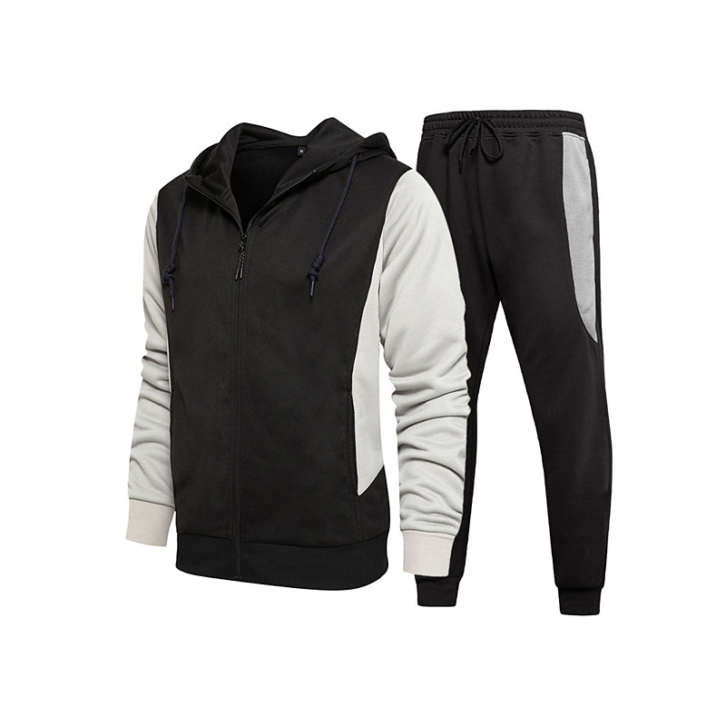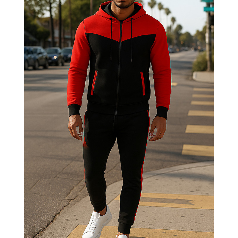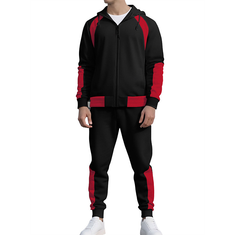 Men's Tracksuit Outfit Set Hoodies Set Hoodie Outdoor Daily Sports Drawstring Zip Up Pocket Color Block Wine Red Black White Activewear Fashion Streetwear Spring