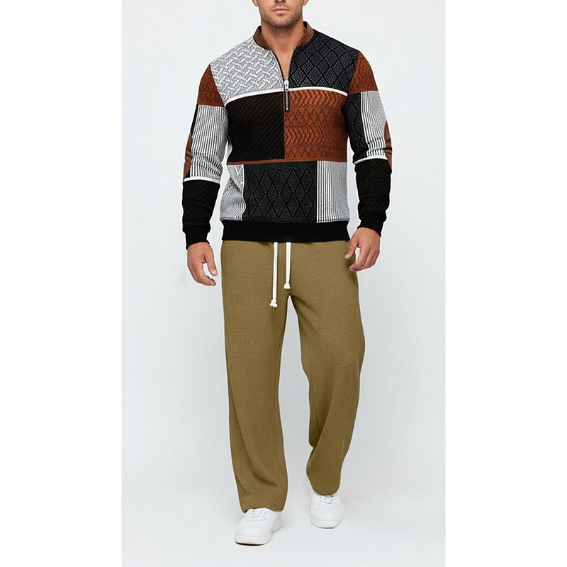 Men's Sweatshirt Tracksuit Outfit Set Stand Collar Outdoor Daily Sports Drawstring Pocket Color Block Black Khaki Dark Blue Polyester Activewear Fashion Streetwear Spring
