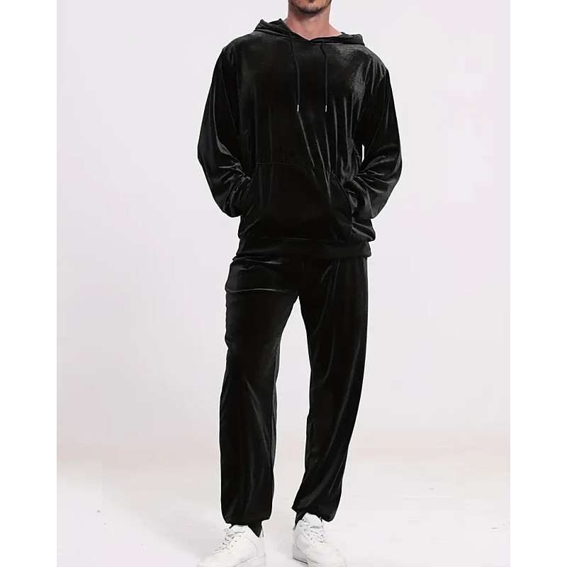 Men's Sweatshirt Tracksuit Outfit Set Lapel Outdoor Daily Sports Drawstring Button Up Pocket Plain Black Red Navy Blue Polyester Activewear Fashion Streetwear Spring