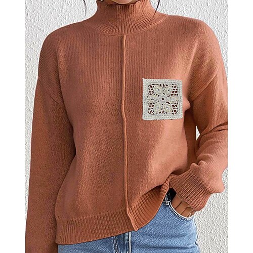 Per donna Felpa Maglione Streetwear Casual Tinta unica Dolcevita Lavorato a maglia Manica Lunga Top Regolari Maglia Quotidiano Ferie Uscire Nero Cachi Autunno Inverno