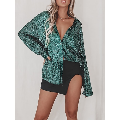 Per donna Blusa Tinta unica Elegante Signore Manica Lunga Colletto a Camicia Top Regolari Quotidiano Lavoro Bottoni Nero Rosa Vino Verde Albicocca Primavera Autunno Inverno