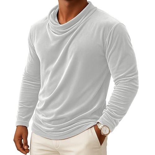 Per uomo Maglietta Manica Lunga Girocollo Autunno Autunno Inverno Tutte le stagioni Tinta unica Tradizionale / Vintage Casual Arricciato Casuale Casa All'aperto Vinaccia Nero Bianco Maglietta Top