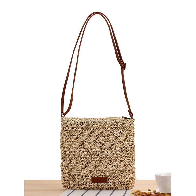Handwoven Straw Crossbody Bag for Women – Boho Rattan Shoulder Bag with Adjustable Strap, Lightweight Summer Beach Purse for Vacation, Travel Casual Outings Army Green Brown Khaki