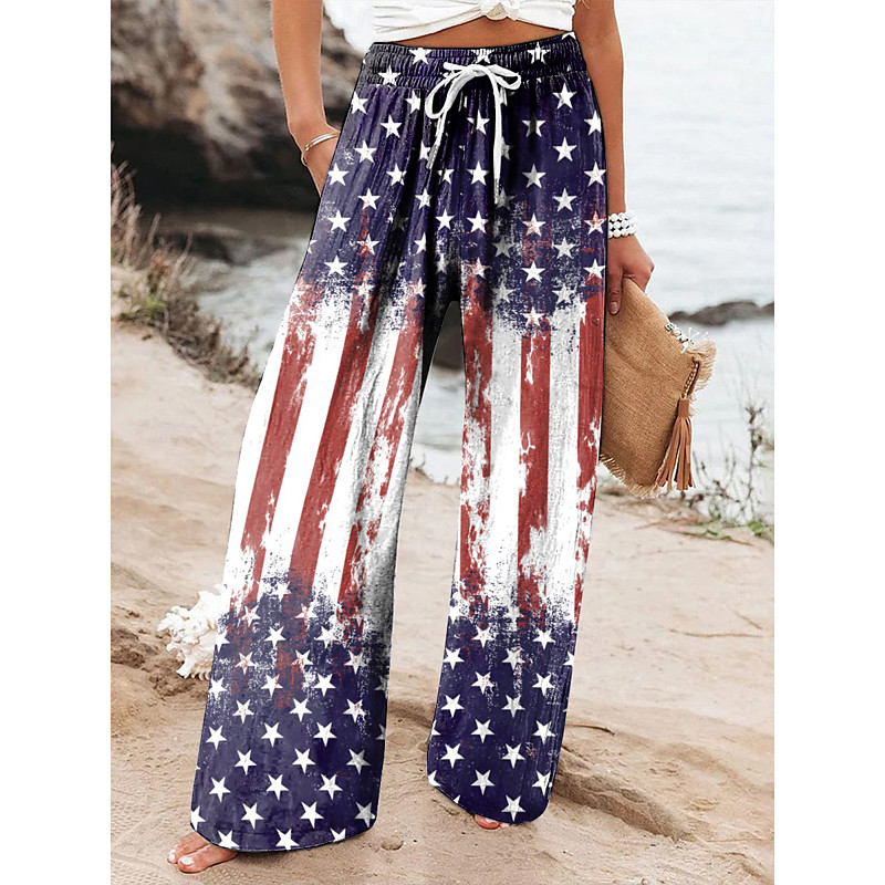 Women's Wide Leg Chinos Baggy Pants Vacation Vintage Fashion Full Length High WaistPantsAmerican Independence Day Graphic Flag American Flag Printing Micro-elastic Formal Vacation Street Red / Blue