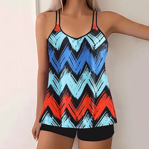 Costume da bagno due pezzi tankini da donna Briefs Attivo Vacanza Ombre Grafica U Neck Senza maniche