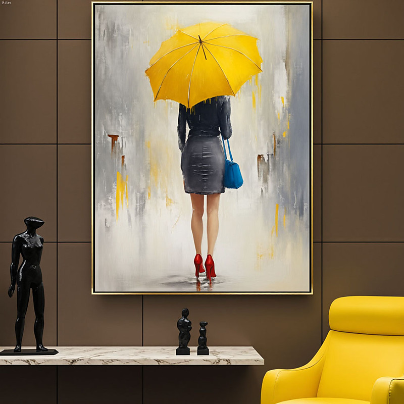 Girl's Room Canvas Decor Woman with Yellow Umbrella Wall Hanging Yellow Umbrella Art Canvas Modern Wall Art 3D Canvas
