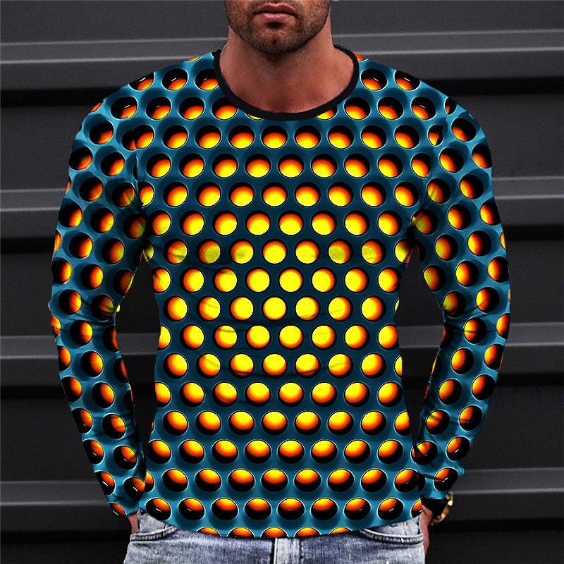 Men's Graphic Geometic T Shirt Long Sleeve T shirt 3D Print Crew Neck Shirt Fashion Designer Casual Sports Outdoor Holiday Going out Yellow Blue Red Spring Fall Clothing Apparel S M L XL 2XL 3XL
