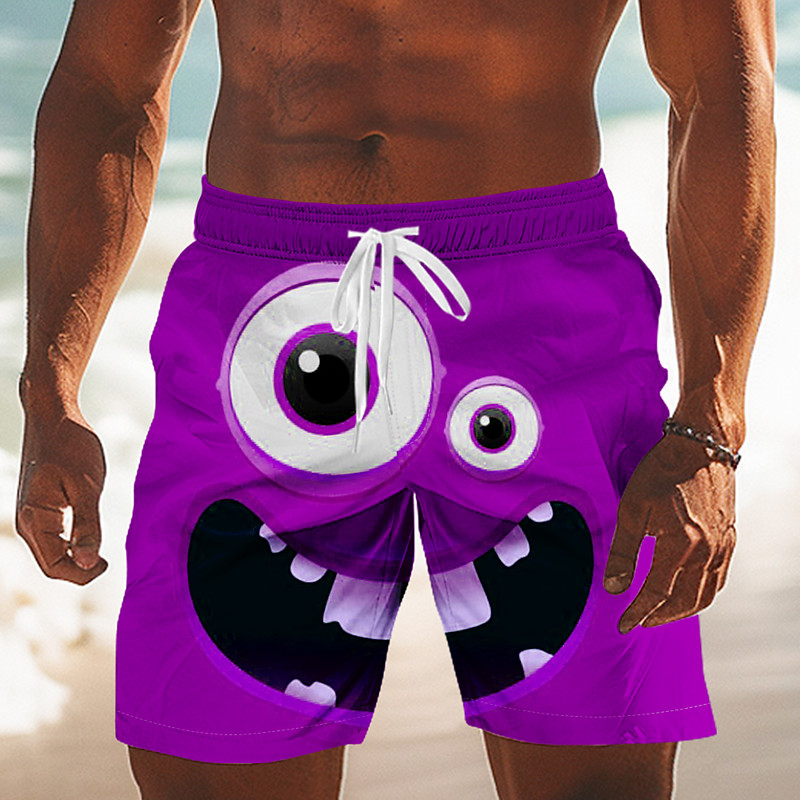 Men's 3D Cartoon Smile Face Big Eyes Swim Trunks Swim Shorts Board Shorts Mid Waist Funny Outdoor Vacation Dailywear Side Pockets Mesh Lining Elastic Drawstring Waist Designer Clothing Apparel