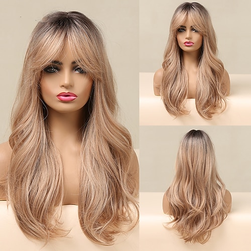 Lange Perücken für Frauen Mittelscheitel Wellig Perücke - Natürlich Aussehende Synthetische Hitzebeständige Faserperücke Für Veranstaltungsfeiern Cosplay Täglich 26IN(Ombre Blonde) Halloween Perücken