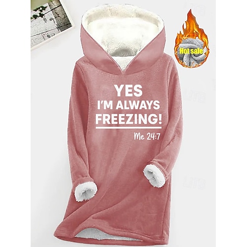 Damen Kapuzenpullover Grafik Buchstabe Lässig Komfort Langarm Mit Kapuze Lange Oberteile Straße Alltagskleidung Lässig Druck Rosa Blau Grau Herbst Winter
