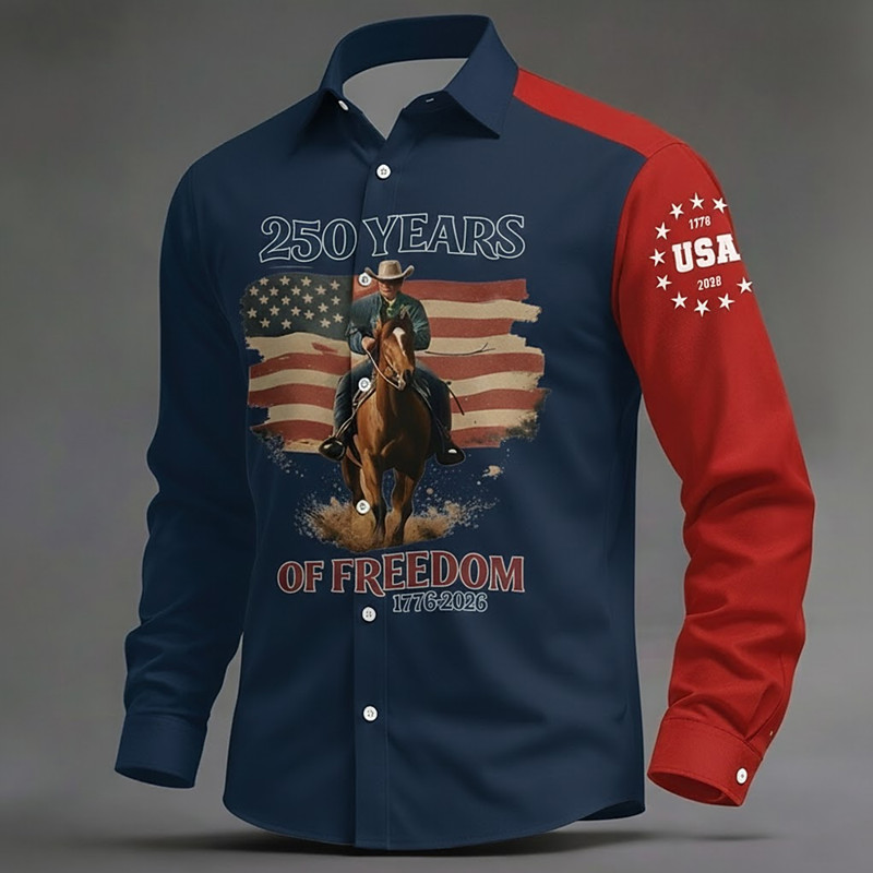 Men's US Flag Freedom America's 250th Anniversary Shirt Button Up Shirt Long Sleeve Vintage Retro Holiday Casual Daily Spring Fall Turndown 3D Print Linen Like Shirt White Red Dark Blue
