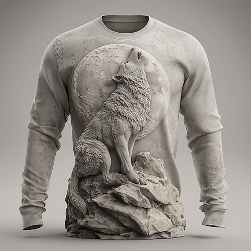 Per uomo Illusione ottica Lupo Maglietta Manica Lunga maglietta Stampa 3D Girocollo Camicia Moda Esagerato 3D Streetwear Quotidiano Nero Cachi Grigio Estate Primavera Autunno Abbigliamento S M L XL